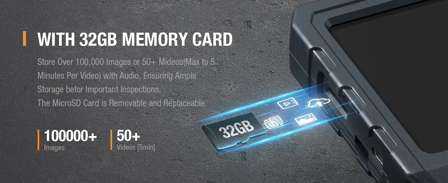 5. WHAT'S INCLUDED - TD500 3.9mm Articulating Borescope, Type-C Charging/Data Cable, 32GB microSD Card(Installed), Carrying Case, User's Manual.